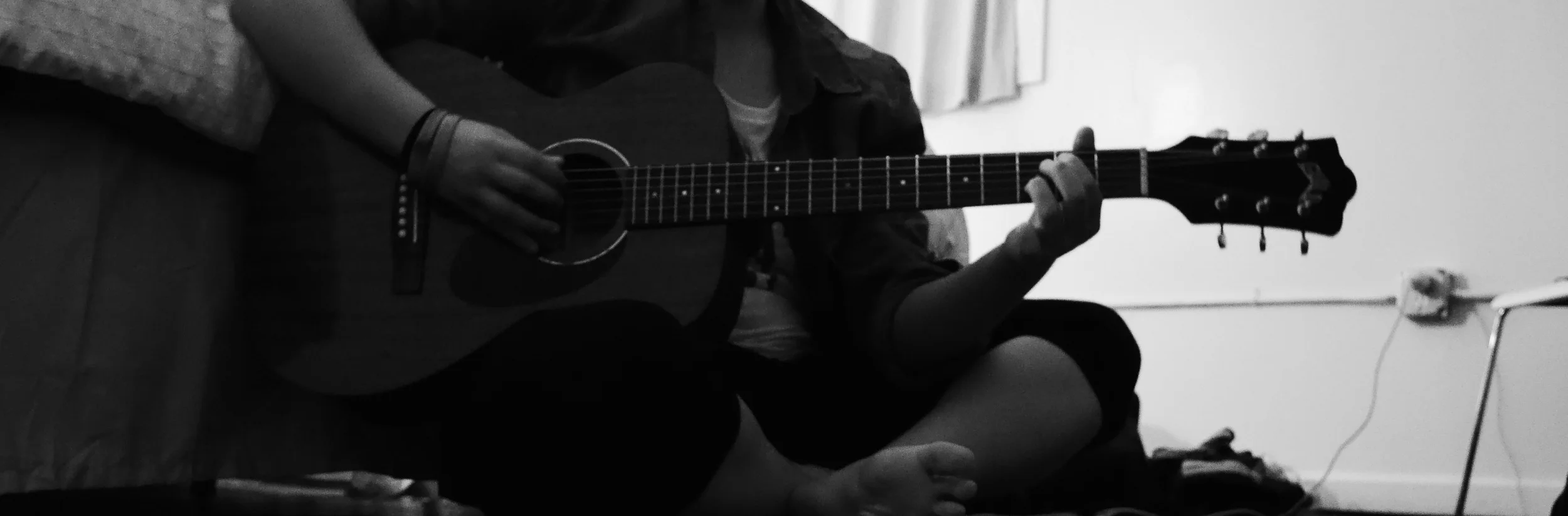 He held up the guitar. A string was missing, the wood cracked and dented horribly.